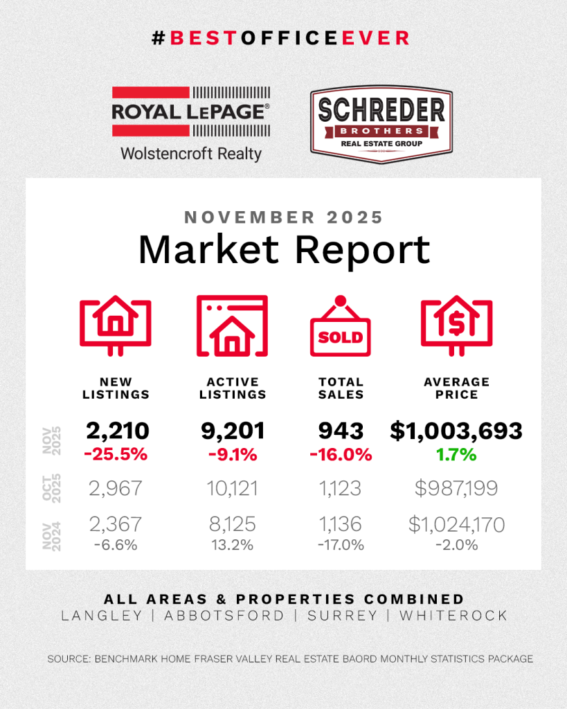 And the news is just as merry and bright for sellers with the right strategy! While the overall market cools, highly localized hotspots prove that demand is strong for desirable properties. We saw Mission detached sales rocket up 31% month-over-month, showing powerful momentum in the $800,000 to $900,000 band (a Seller’s Market!). Likewise, townhome and condo sellers in Langley and Cloverdale found competitive success, especially those priced in the $600,000 to $900,000 ranges. These pockets of intense activity confirm that strategic pricing is the key to a successful, quick sale before the spring rush begins. Let’s connect soon to ring in the holidays and put the finishing touches on your end-of-year real estate plan! HO HO HO!