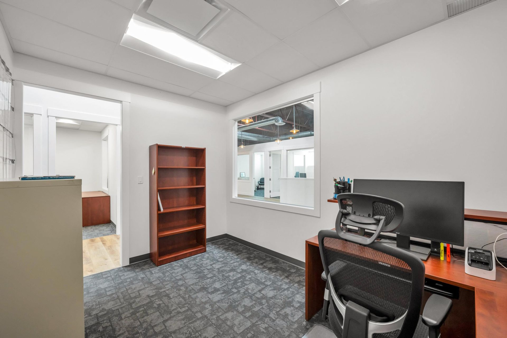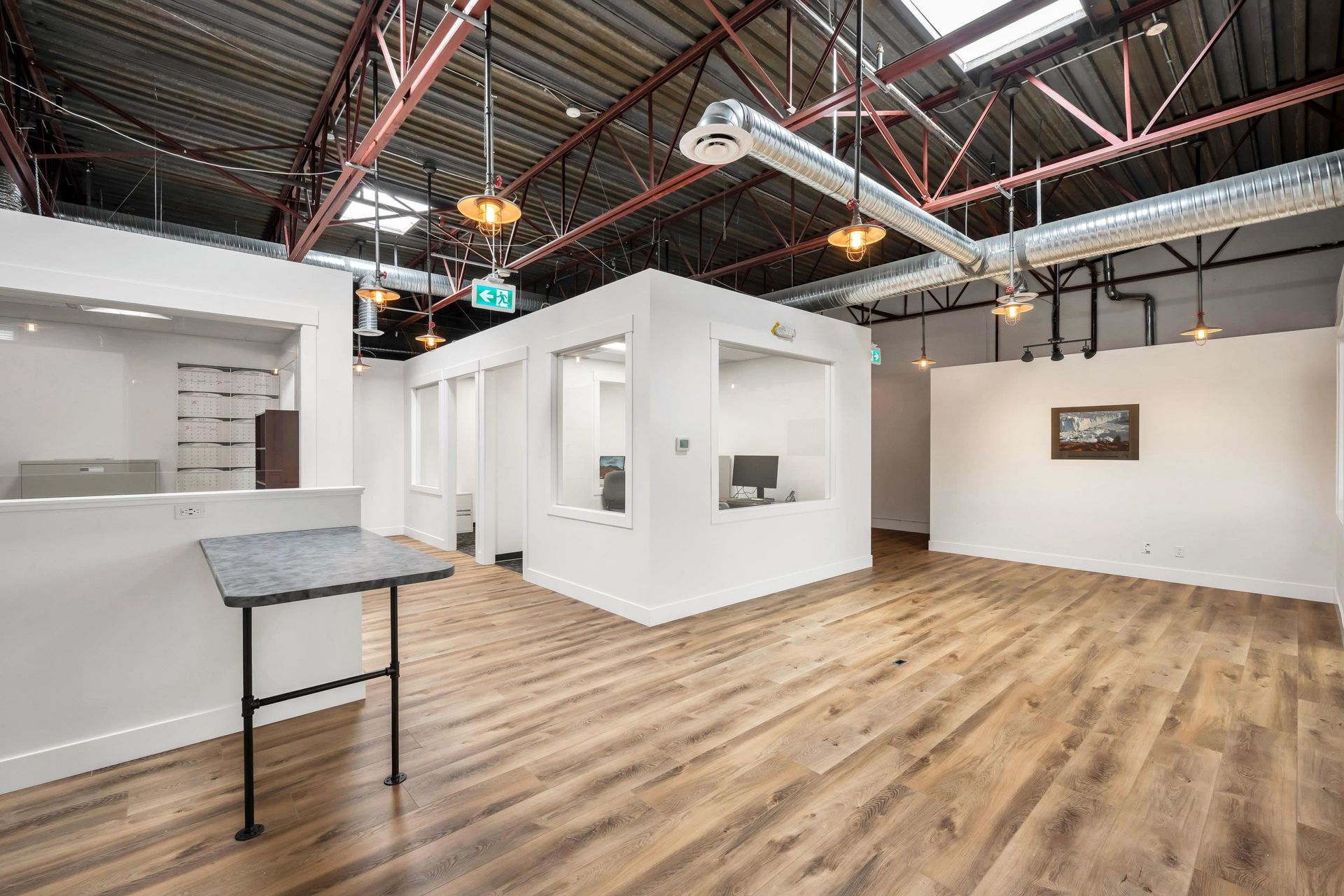 This 4,672 square foot industrial strata unit is centrally located in Cloverdale with 2,480 square feet of 9'11" ceiling height warehouse space and 2,192 square feet of well-appointed second floor office space with soaring 14'7" clear ceiling height. The office area features 8 private offices (two with extra sound insulation), a large open work area, and a modern kitchenette. The warehouse offers 3-Phase / 240-Volt / 200-AMP power supply and is accessible via one 10' x 12' gr…ade level roll-up door. There is also one 220-Volt outlet for EV charging already installed at the front of the unit. IB (Business Park) zoning allows for a wide range of potential uses. The space is owner occupied and is available with one month's notice to vacate.