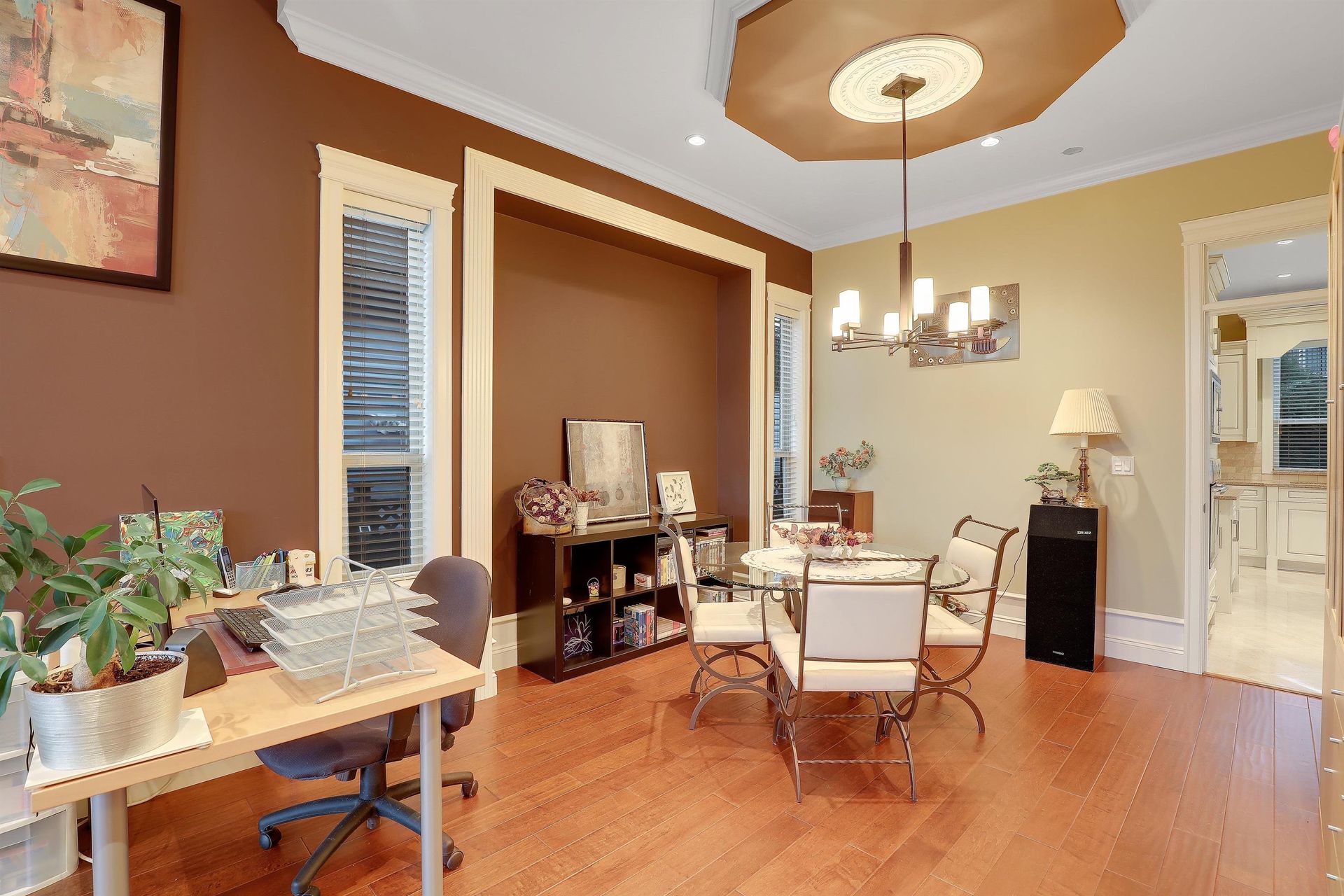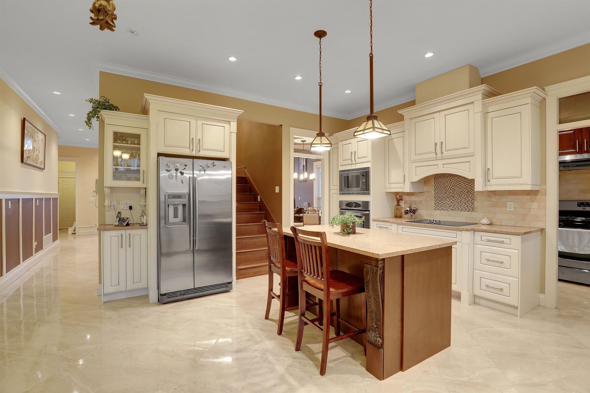 This exceptional property blends elegant design with luxurious comfort, spanning 5,747 sqft on a generous 7,361 sqft rectangular lot. With 8 bedrooms and 7 bathrooms, this home offers a wealth of space, character and stunning architectural details like a two-sided staircase, coffered ceilings, crown moldings, and rich hardwood floors. The main-floor offers a master bdrm w/ ensuite, an office and a chef-inspired kitchen w/ glazed cabinetry, stone countertops, S/S appliances, a…nd a wok kitchen. The cozy living room opens to a large covered patio, ideal for outdoor entertaining. Upstairs, you'll find 4 bedrooms (including 2 master bdrms w/ ensuite) and a games room. The basement boasts a dedicated theatre room and 2 suites (2+1). Ample parking up to 8 cars and A/C ensures year-round comfort.